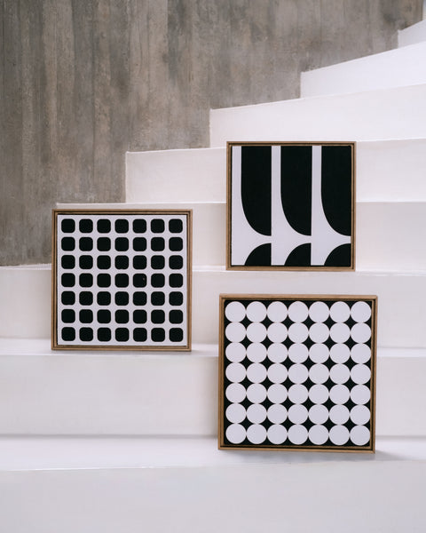 Quadro de linho com arte em mosaico emoldurado em madeira. Inspirado pelo cobogó um ícone da arquitetura brasileira este quadro faz parte de uma coleção que reinterpreta grandes marcos do Brasil explorando a beleza das formas e sombras dos designs. A coleção reflete a elegância dos artigos signature da MH.